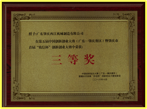 -----恭賀我司獲得2016年第五屆中國創(chuàng)新創(chuàng)業(yè)大賽(廣東.肇慶賽區(qū))三等獎