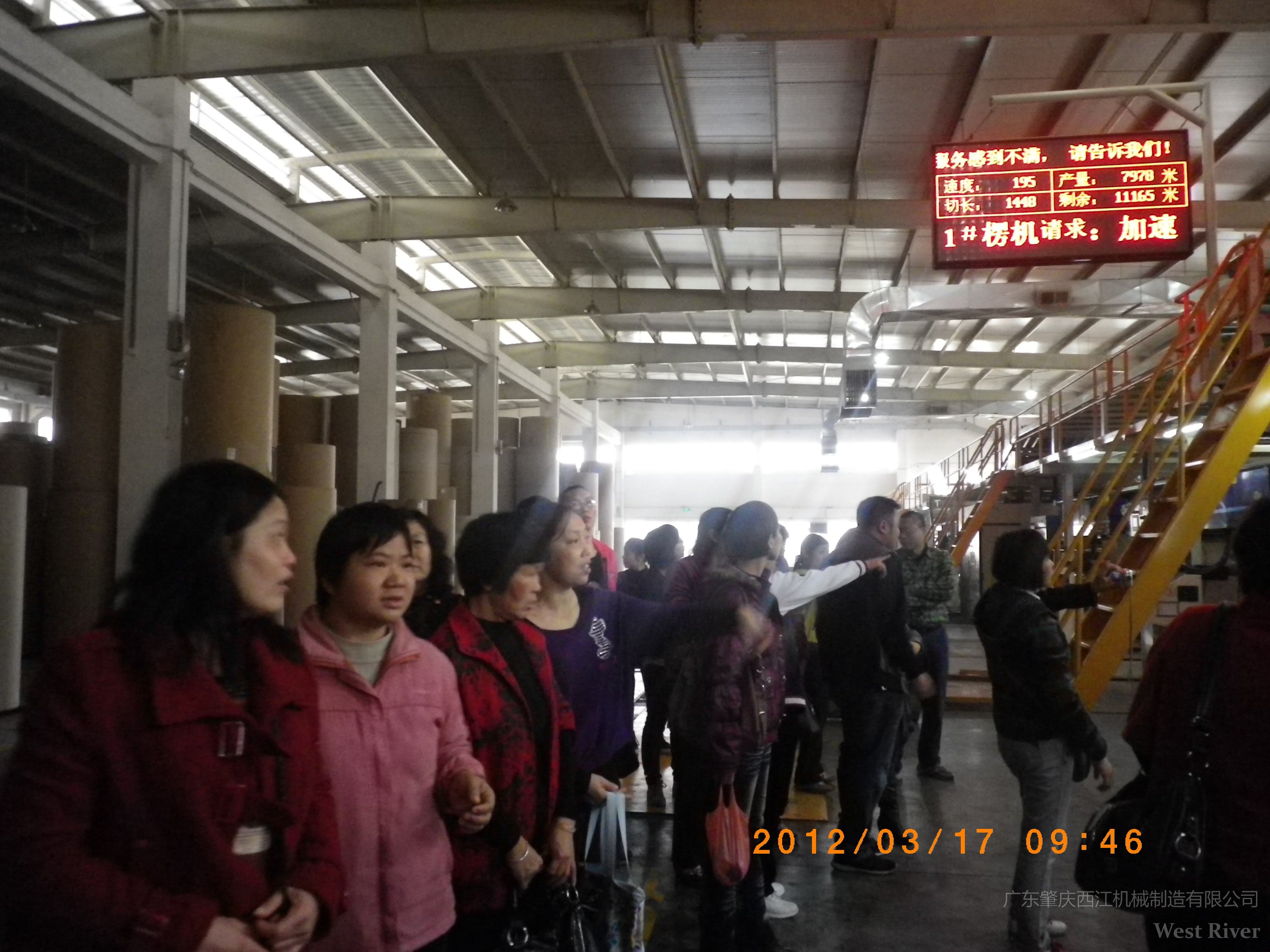 2012年3月17日,為慶祝一年一度的國際三八婦女節(jié),公司邀請全體女員工到佛山永久紙業(yè)制品有限公司參觀瓦楞紙生產線。佛山永久紙業(yè)制品有限公司目前運作的生產線是計算機控制高速寬幅五層瓦楞紙板生產線WJ250-2500-2,最大車速為250/min,有效寬幅為2500mm,讓所有女工領略了用自己的雙手創(chuàng)造的具有國際領先水平高速全自動標志性產品。