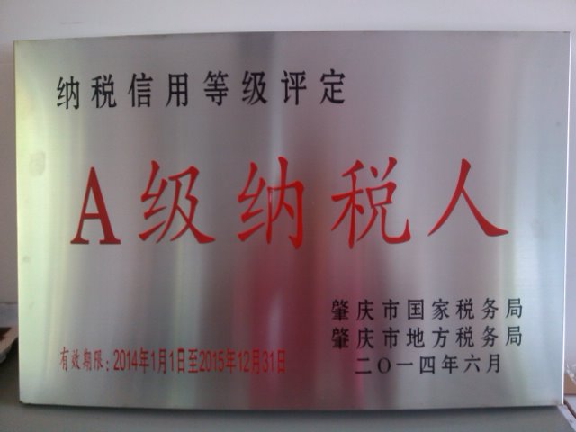 我司榮獲肇慶市“A級納稅人”“廣東省守合同重信用企業(yè)”