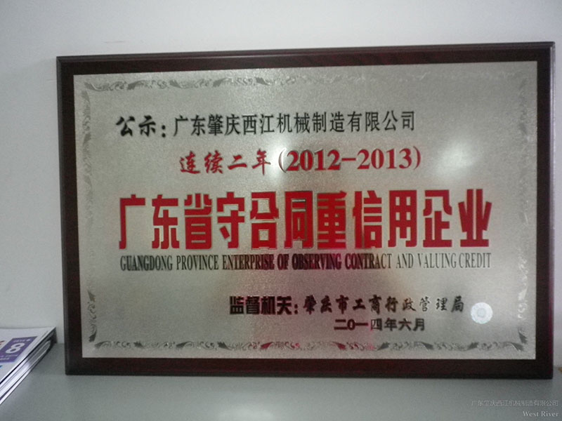 “守合同重信用”活動,是工商行政管理機(jī)關(guān)根據(jù)我國《民法通則》和《合同法》中規(guī)定的誠實(shí)信用原則,依據(jù)企業(yè)合同履約的客觀記錄,經(jīng)過嚴(yán)格考核,對合同履約信用程度達(dá)到規(guī)定標(biāo)準(zhǔn)的企業(yè)予以認(rèn)定并向全社會公示的活動。西江機(jī)械一貫堅(jiān)持“守合同重信用”原則經(jīng)營,塑造誠信守法企業(yè)文化,以良好的企業(yè)信譽(yù)和商業(yè)道德、優(yōu)質(zhì)的產(chǎn)品與服務(wù),贏得了行業(yè)同仁以及客戶的高度認(rèn)可和充分信賴。此次再獲“廣東省守合同重信用企業(yè)”稱號,是各級政府和社會各界對西江機(jī)械長期履行社會責(zé)任、誠信守法工作的充分肯定和積極鼓勵,我們將不懈努力、一如既往地誠信履約、守法經(jīng)營,促進(jìn)全社會良好信用觀念的形成,推動社會信用體系的建設(shè)。
