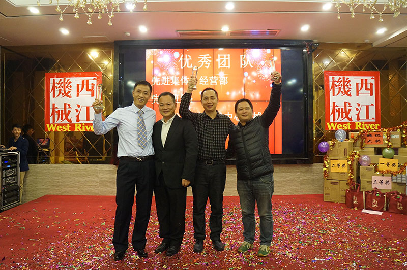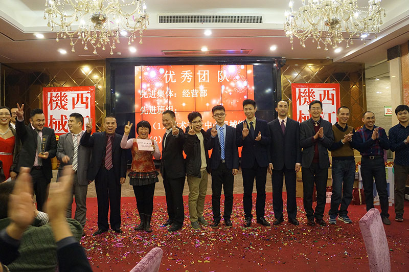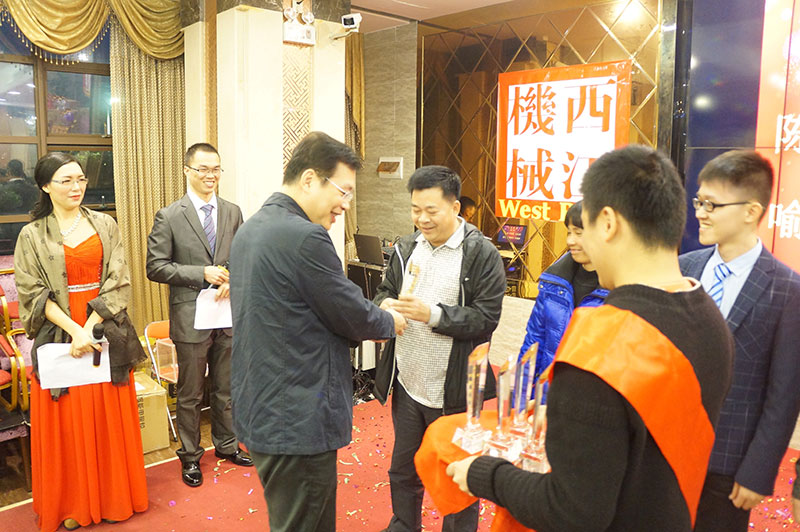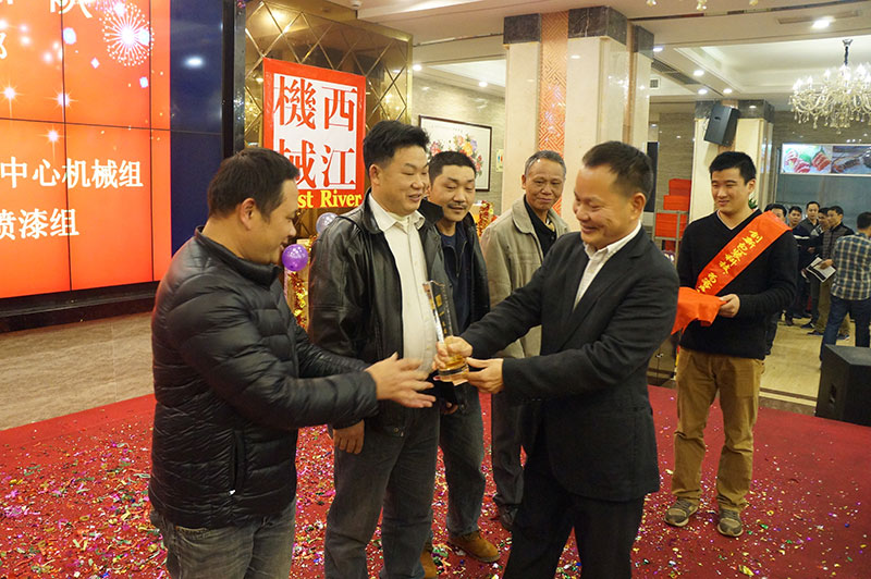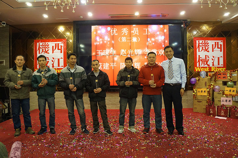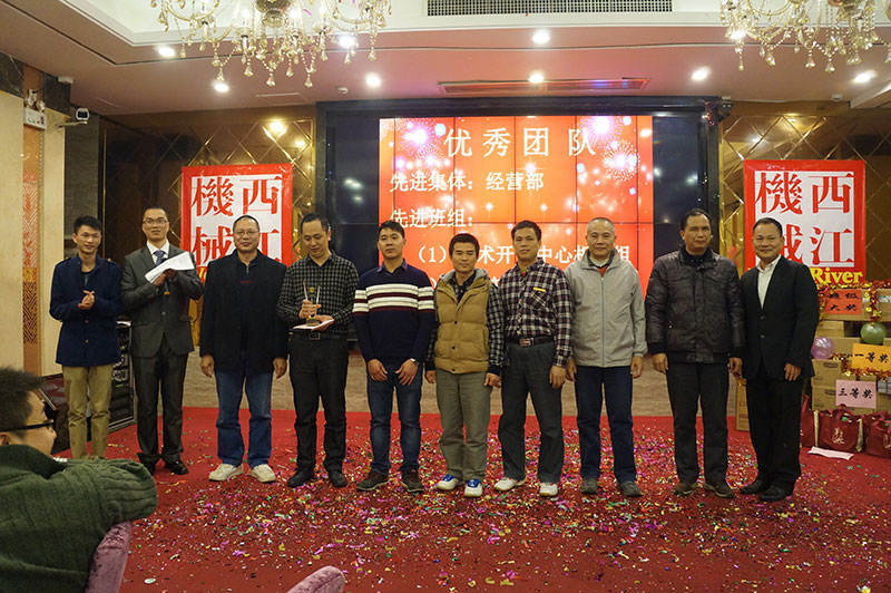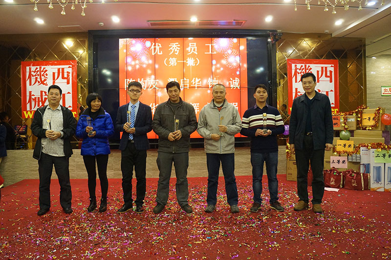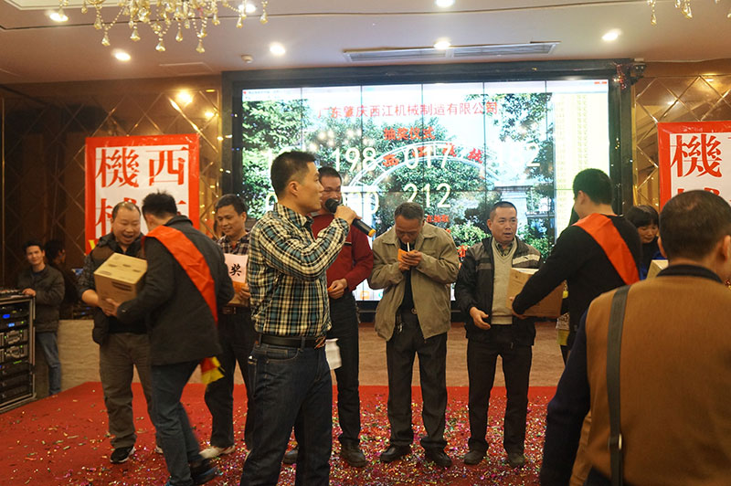 團(tuán)拜會(huì)在一首歡快活躍的歌曲《西江機(jī)械范兒》中拉開序幕。接著公司董事長(zhǎng)黃紅日長(zhǎng)發(fā)表了熱情洋溢的致辭,他認(rèn)真總結(jié)了2015年的工作,對(duì)全體員工的辛勤付出給予了充分肯定和贊揚(yáng)。團(tuán)拜會(huì)對(duì)在2015年獲得優(yōu)秀團(tuán)隊(duì)的經(jīng)營(yíng)部、技術(shù)開發(fā)中心機(jī)械設(shè)計(jì)組、總裝車間噴漆組:獲得優(yōu)秀管理者的楊德祥先生和優(yōu)秀班組的班組長(zhǎng)楊小東先生、韋安武先生;獲得優(yōu)秀員工的陳均友等二十多人進(jìn)行了表彰。團(tuán)拜會(huì)還安排了抽獎(jiǎng)節(jié)目,搞笑滑稽的活動(dòng)將團(tuán)拜會(huì)推上高潮。